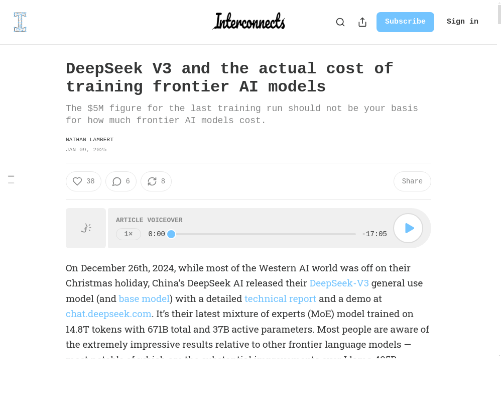 DeepSeek V3 and the actual cost of training frontier AI models