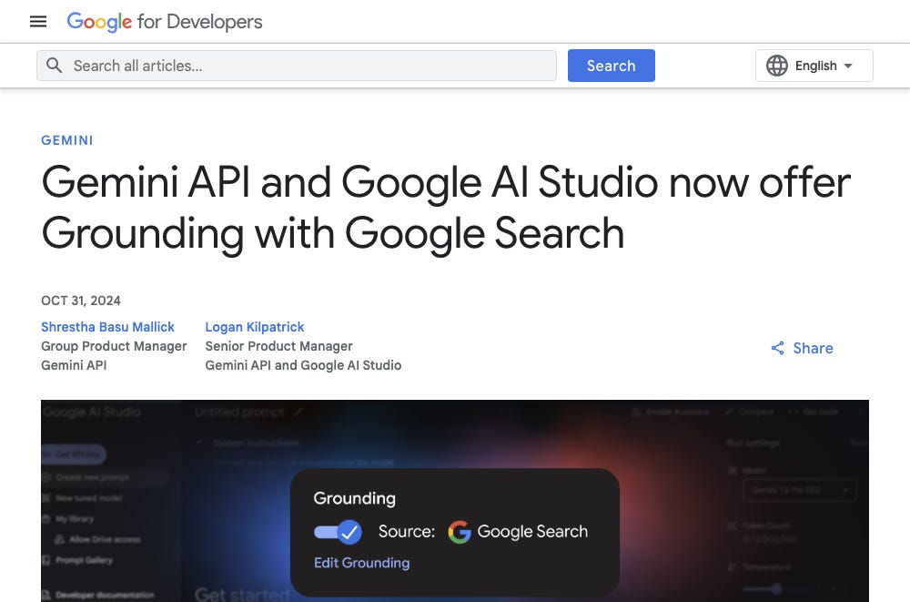 Gemini API and Google AI Studio now offer Grounding with Google Search