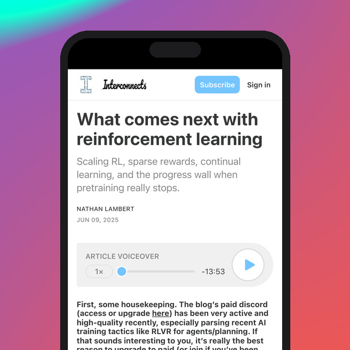 âs writing. I highly recommend his recent article, âWhat comes next with reinforcement learningâ. He contextualizes the frontier of reinforcement learning and the direction it needs to go. Thereâs also a voiceover of the article, which is always a nice touch.How deep research assistants work