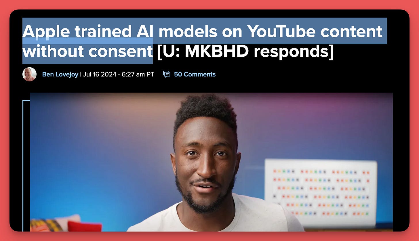 Large tech companies have come under fire for using training data training that had been scraped against terms and conditions (see above).