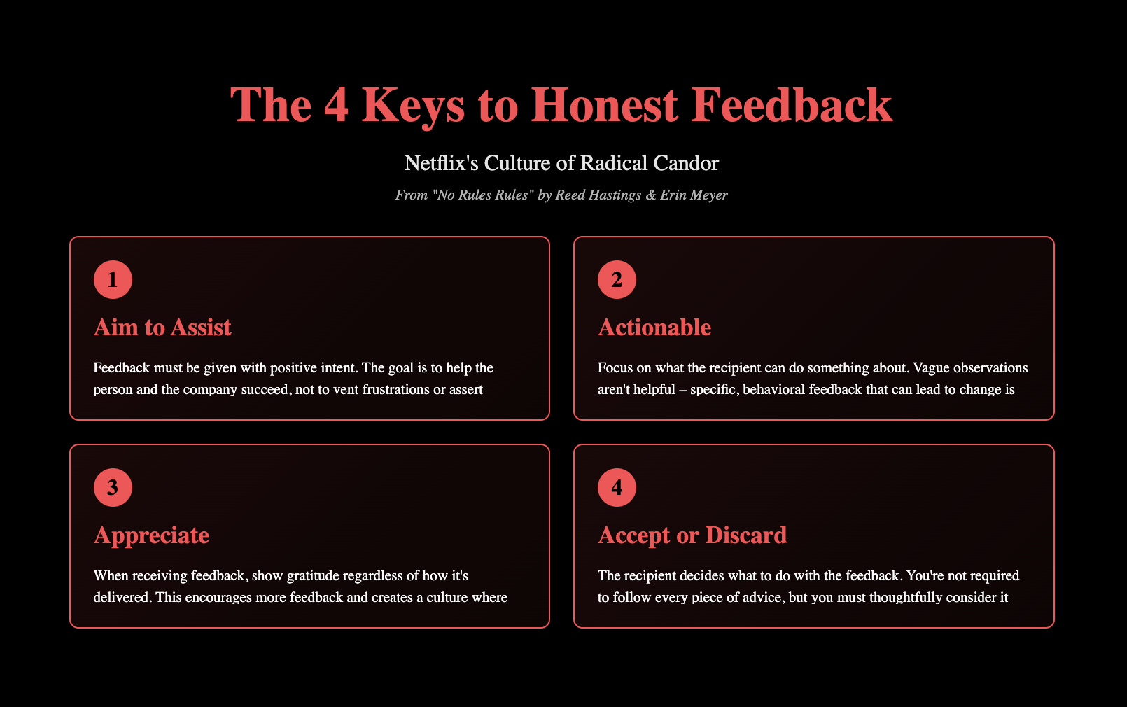 ‘No Rules Rules’ is very specific about two requirements for Netflix’s approach at feedback to work: